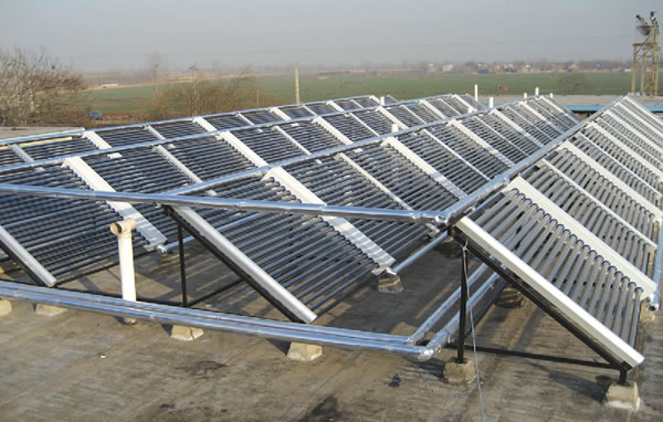 通过设定集热系统出口温度和保温水箱内温度值,实现循环泵自动启闭,使保温水箱内冷水不断进入太阳能集热器,太阳能集热器内热水被顶入保温水箱,使水箱内水温不断升高。